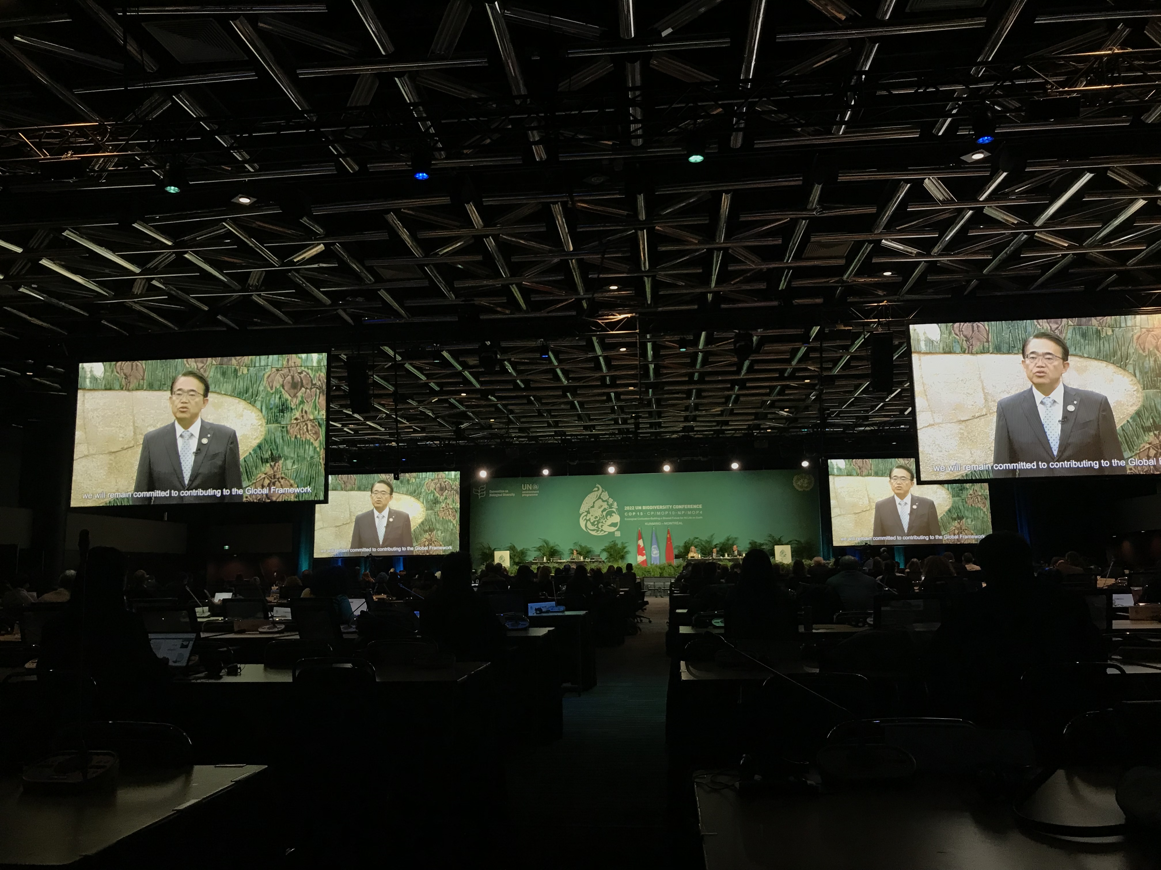 議題3「GBF – Facilitating the implementation」の最初のセッション(a)「生物多様性枠組のモニタリングフレームワーク」において、声明を発表しました。内容は、生物多様性保全に向けた取組のなかでサブナショナル政府の重要な役割についての認識が高まっていることを歓迎するとともに、昆明・モントリオール生物多様性枠組に引き続き貢献していくという、サブナショナル政府の決意を表明するものでした。